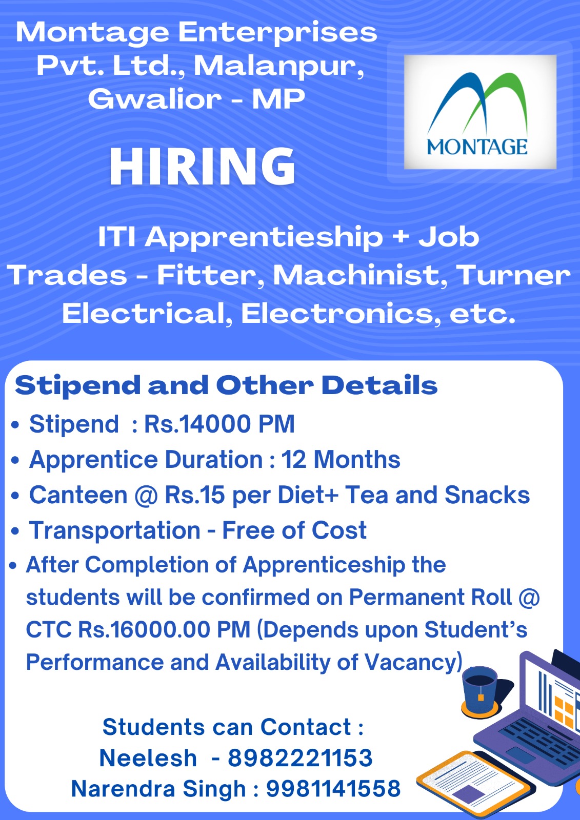DownloadMONTAGE ENTERPRISES GWALIOR HIRING (ITI apprentice, trades- fitter, machinist, turner, electrical) (jpg)